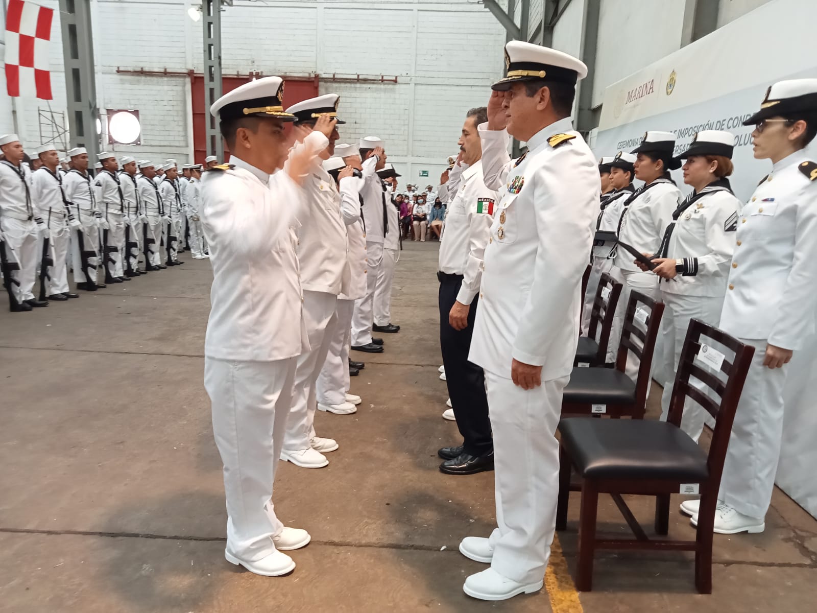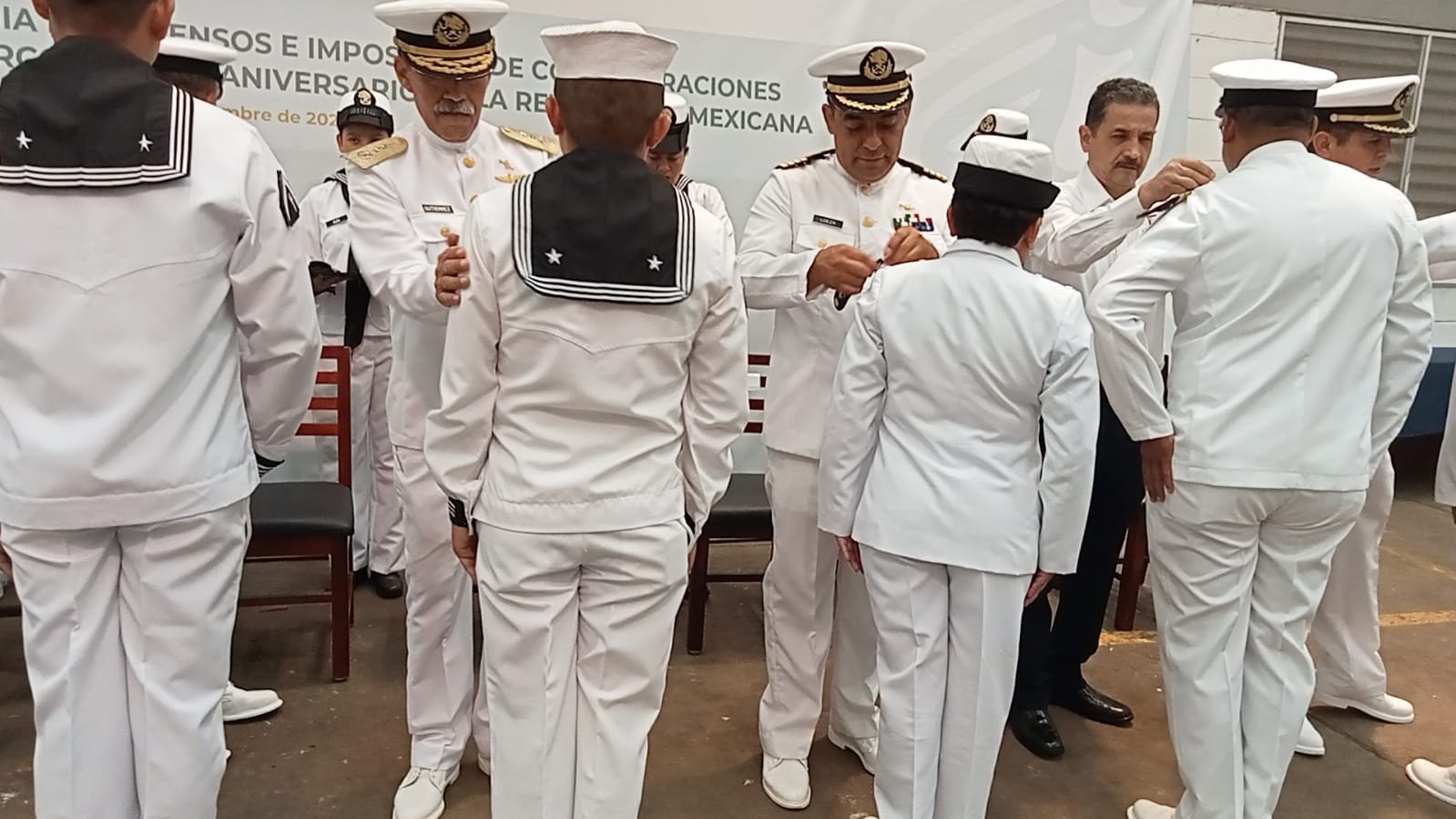 Cabe destacar, que se llevó a cabo un solemne acto, presidido por el Vicealmirante Marcos Hernández Gutiérrez, Comandante de la Séptima Zona Naval, donde se hizo la entrega simbólica de insignias al personal ascendido; asimismo, se les exhortó a continuar desempeñándose en el servicio de su deber, anteponiendo siempre los valores Institucionales.