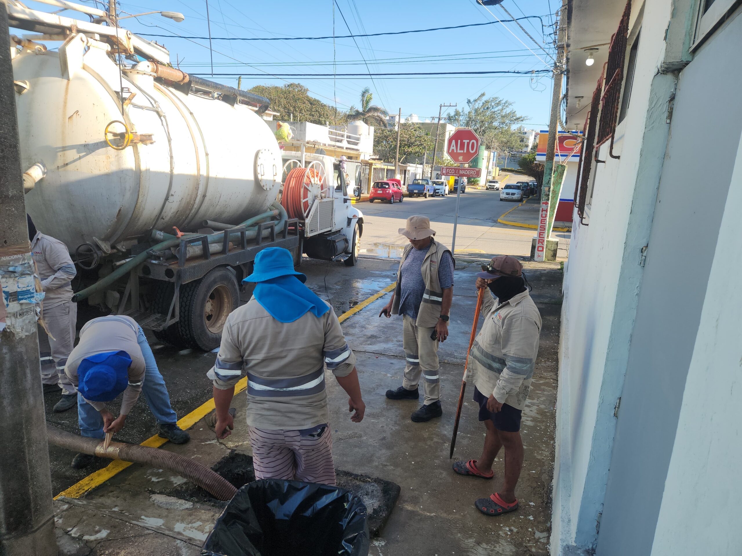 Como parte de la continuidad del programa “A los mercados les irá muy bien”, personal operativo de la Comisión Municipal de Agua y Saneamiento (CMAS) realizó trabajos de mantenimiento en los registros sanitarios del Mercado Puerto México.