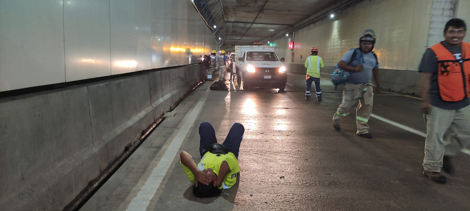 El auto estacionado era de la empresa del túnel y ahí estaban laborando los trabajadores dando mantenimiento al carril de circulación.