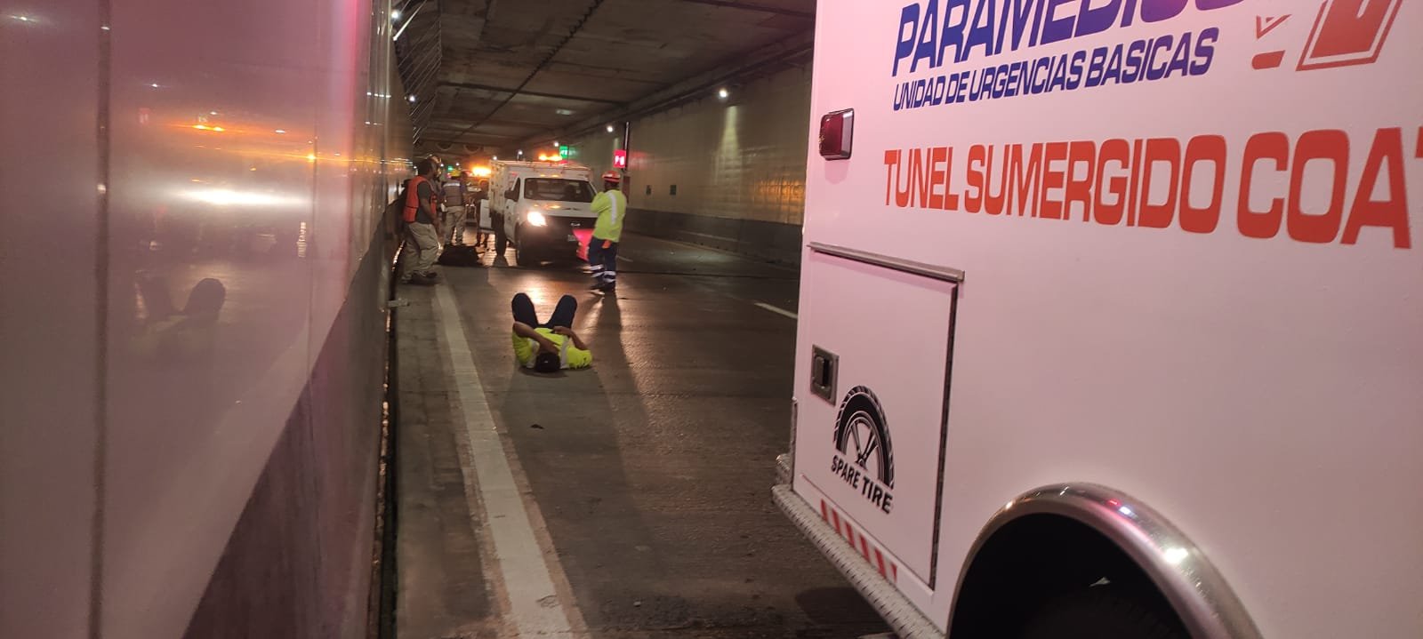 El empleado lesionado y dos señoras que sufrieron crisis nerviosa, recibieron atención médica y fueron auxiliados por paramédicos de una ambulancia del túnel sumergido, sin daños que lamentar.
