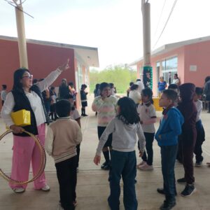 Como parte del componente formativo, una especialista en nutrición impartió una plática sobre alimentación saludable y sus beneficios, complementada con actividades lúdicas, juegos didácticos y concursos enfocados en promover hábitos positivos desde la infancia.