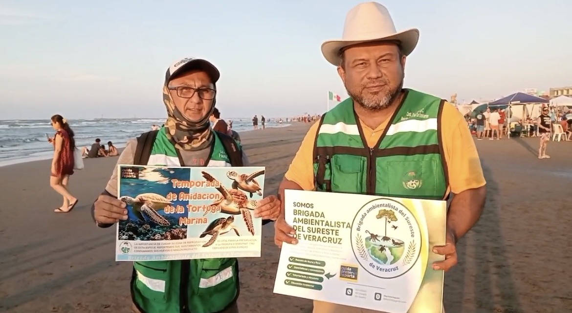 Activistas de la brigada ambientalista del sureste de Veracruz se han desplegado en las playas de Coatzacoalcos, con el fin de dar un mensaje permanente a la población acerca del cuidado de los ecosistemas y especies marinas como la tortuga, que está en temporada de desove.