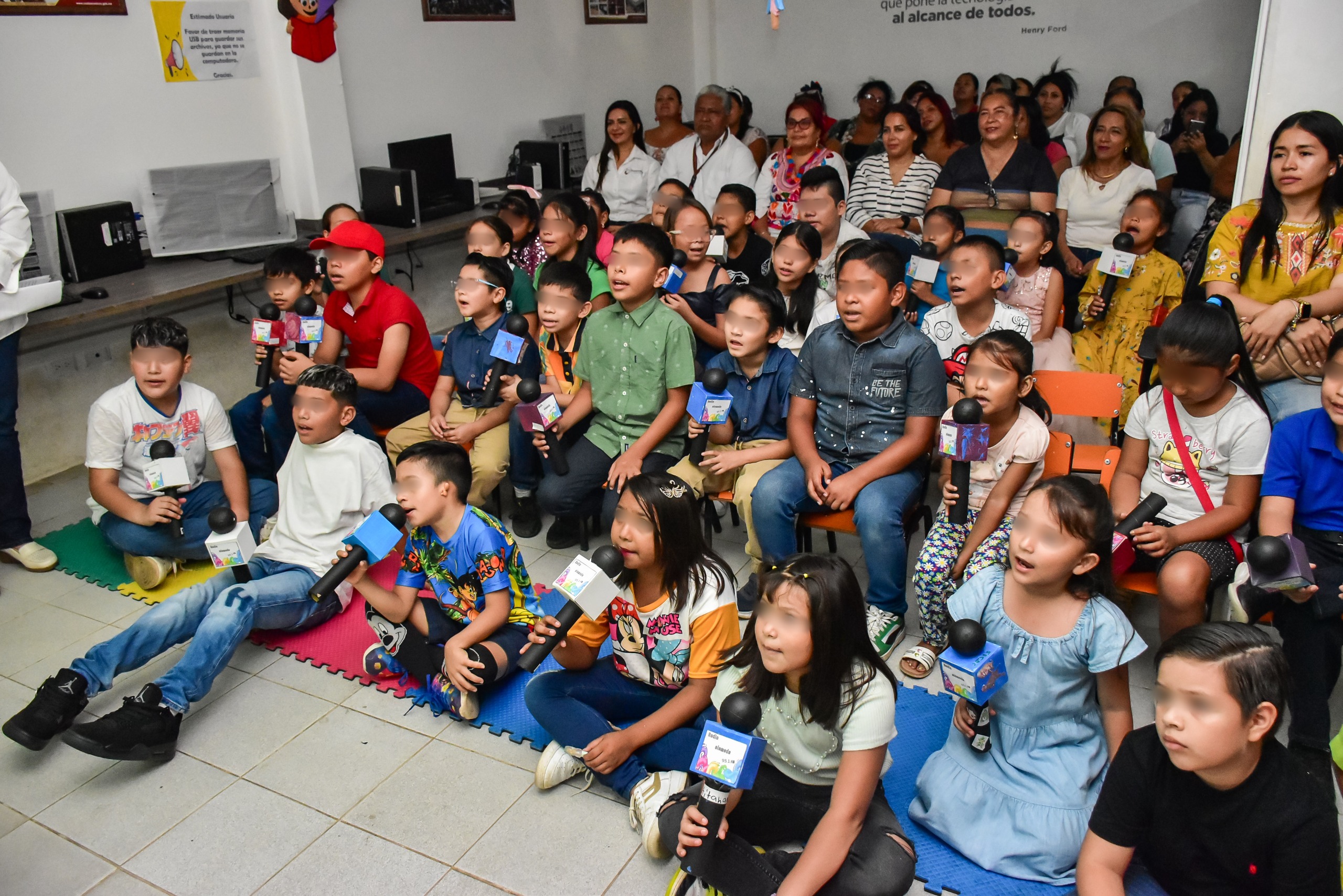 Por su parte, los niños y niñas muy emocionados cantaron una canción; además expusieron los sombreros, micrófonos, dibujos y manualidades hechas de papel, vasos, cartón.
