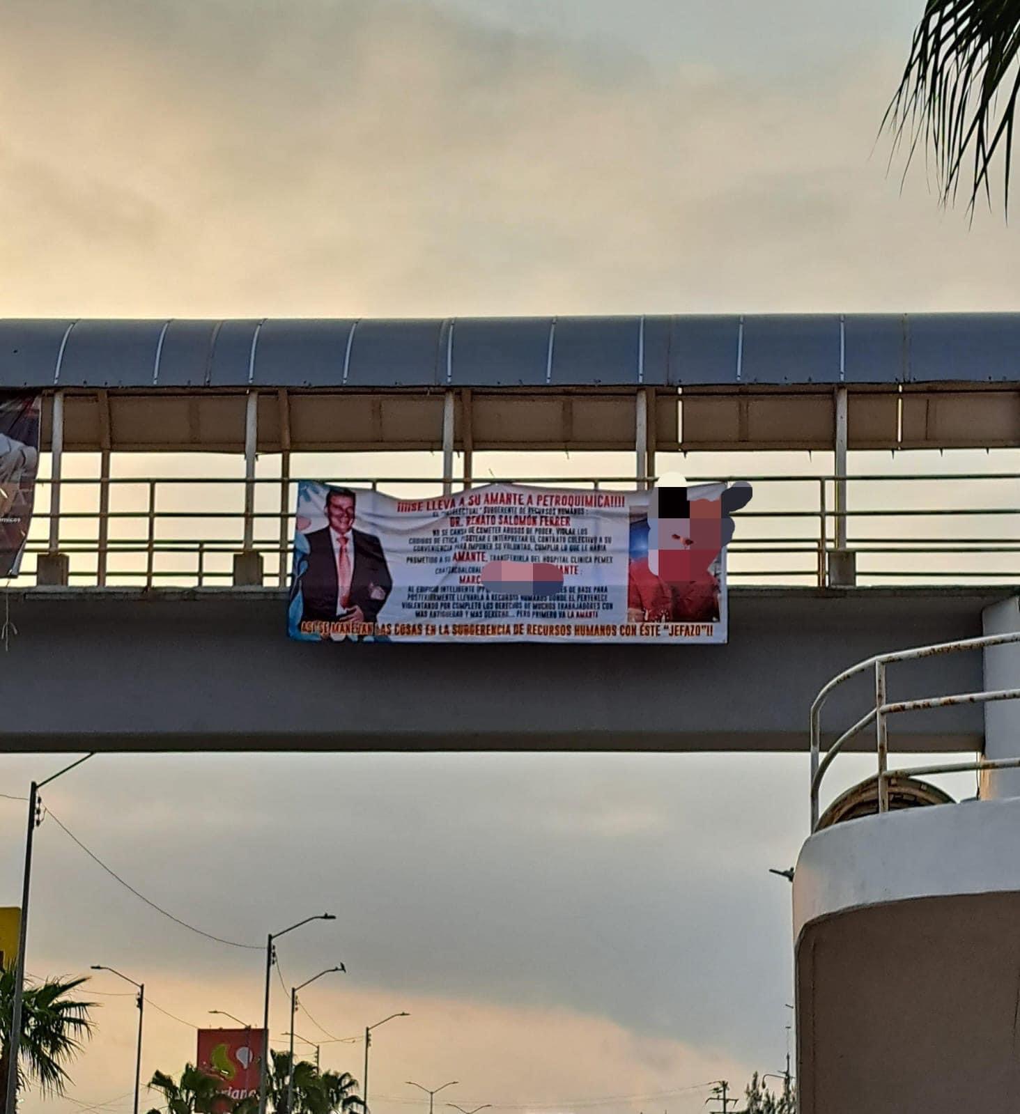 Este incidente ha sido acompañado por la aparición de mantas tanto en el inmueble de Pemex como en diversos puentes peatonales de la ciudad, denunciando públicamente esta situación.