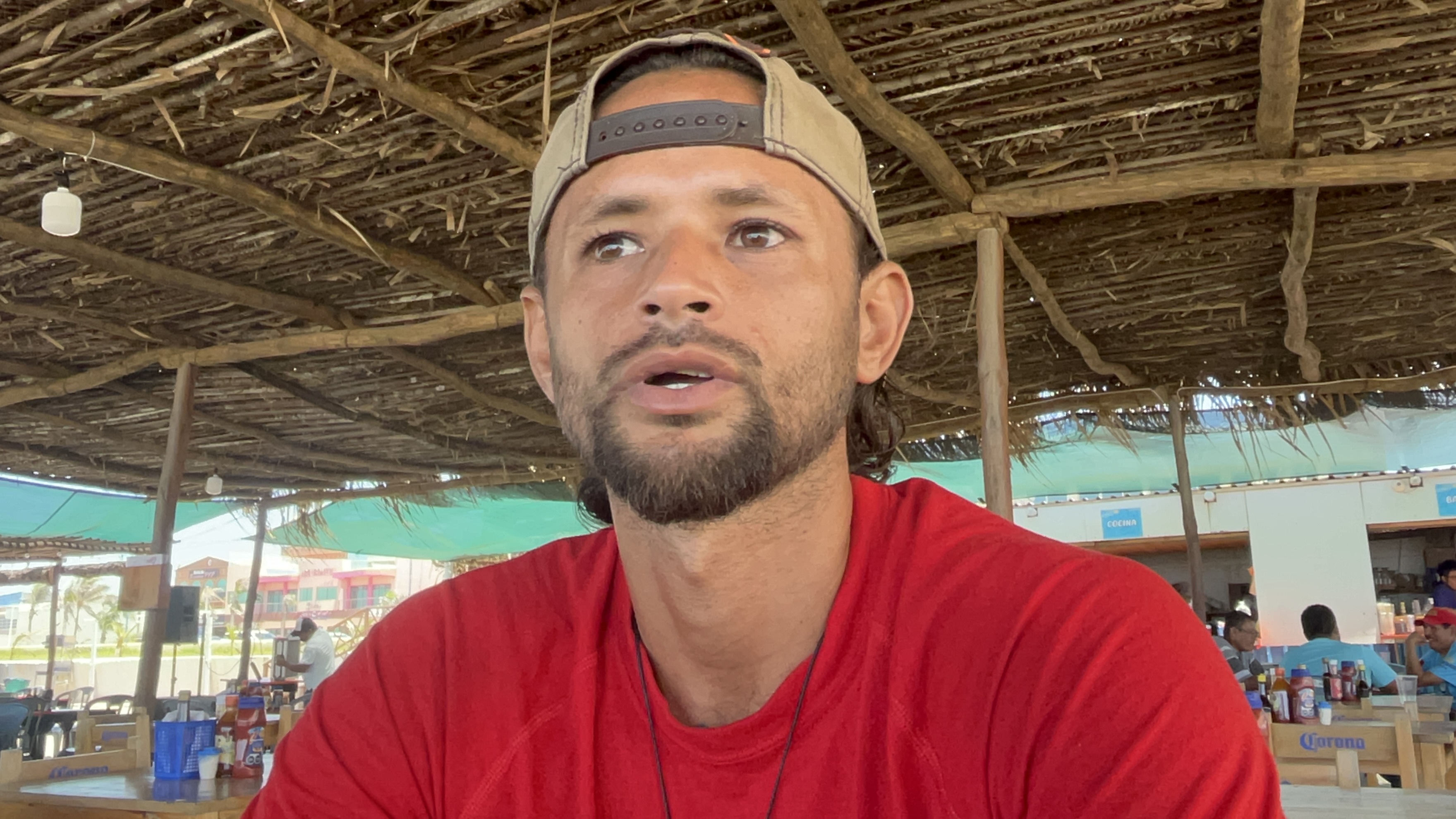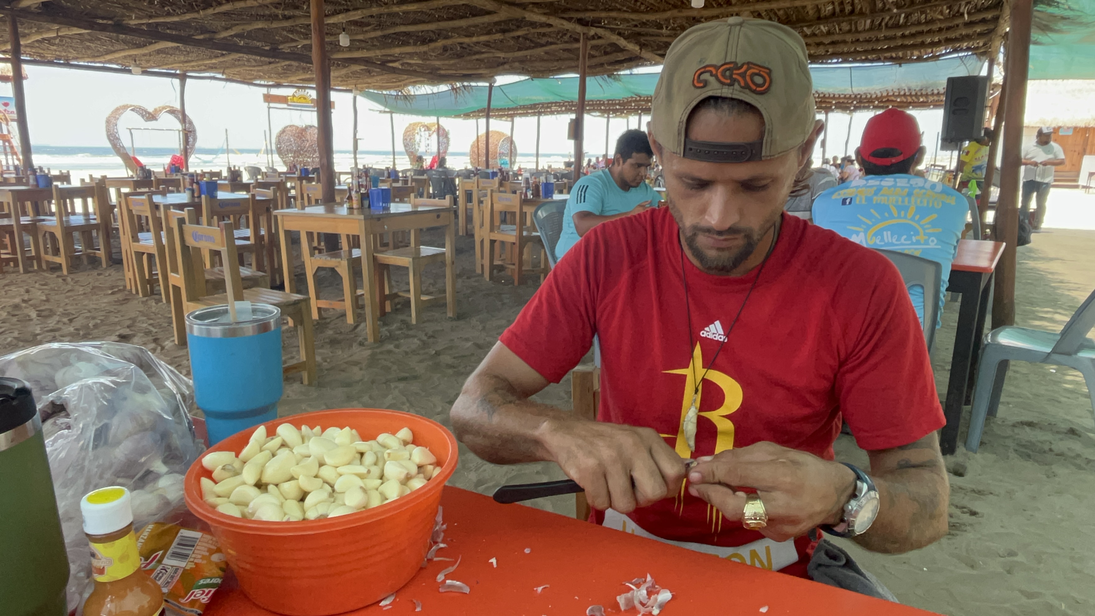 Es garrotero en un restaurante de playa, en el que trabaja desde que llegó.