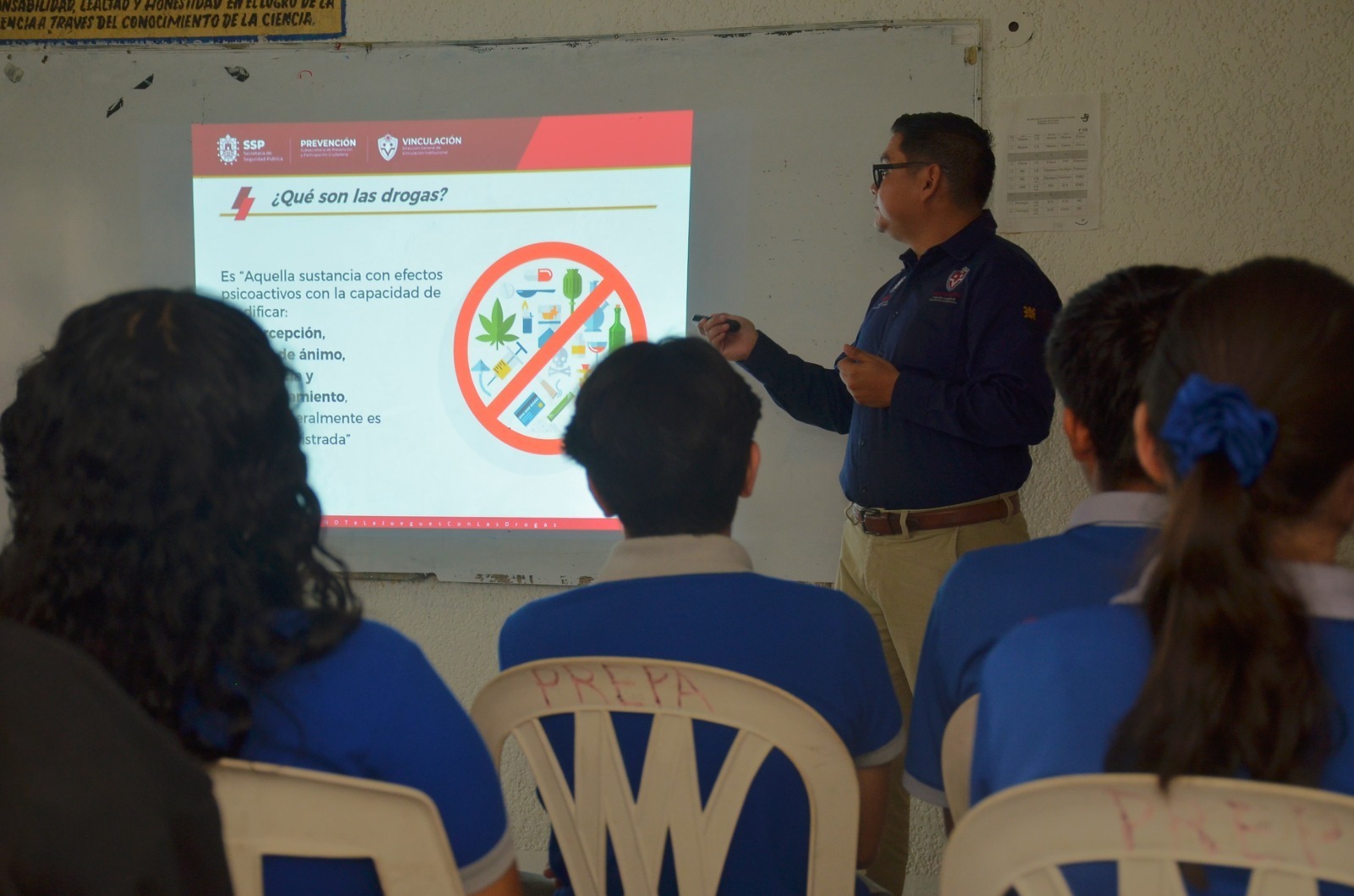 En esta ocasión acudieron con estudiantes de segundo y cuarto semestre de preparatoria, a quienes a través de diapositivas se les explicó qué son las drogas, los daños físicos por ingerirlas, cómo actúan en nuestro cerebro, su clasificación, entre otros aspectos.