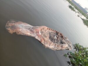 De acuerdo con los testimonios, el animal había sido observado con lesiones aparentes, lo que hacía sospechar un posible impacto de las  embarcaciones o debilitamiento por contaminación en el afluente.