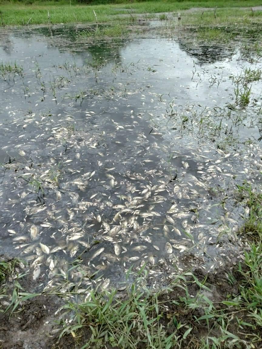 Cientos de mojarras fueron encontradas muertas este martes en la laguna de El Manatí en la localidad de Macayal, en el municipio de Hidalgotitlán.
