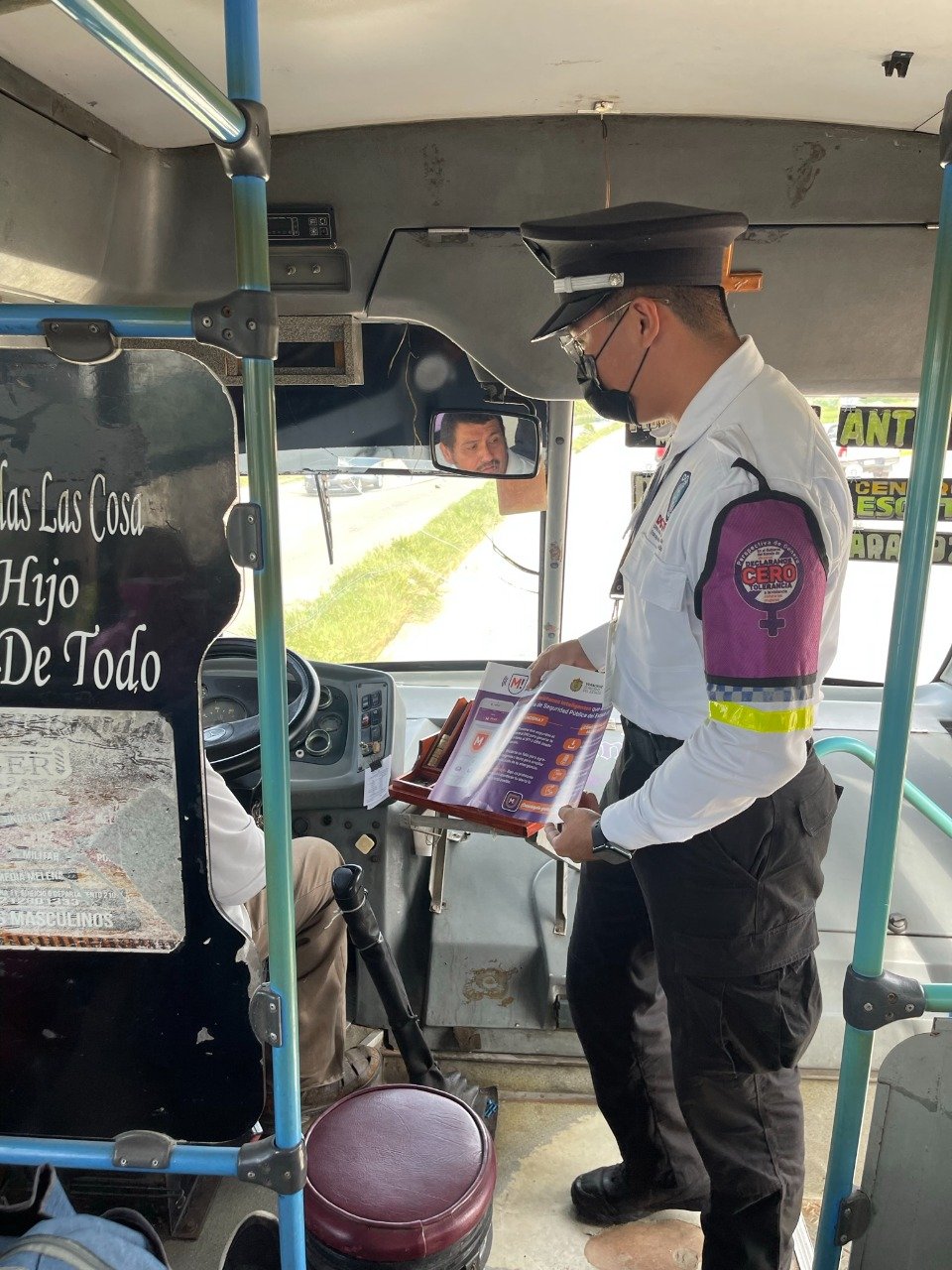 Elementos de la Dirección General de Transporte del Estado, en coordinación con la Unidad de Género, distribuyeron alrededor de 11 mil trípticos en dichos municipios, además de colocar 3 mil carteles y 8 mil calcomanías en vehículos del servicio urbano durante el último mes.