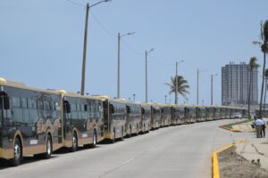 Los autobuses, fabricados por Yutong, son modelos híbridos diésel-eléctricos que permiten disminuir hasta en un 30% el consumo de combustible y reducir emisiones contaminantes, lo que los hace ideales para ciudades costeras como Coatzacoalcos.