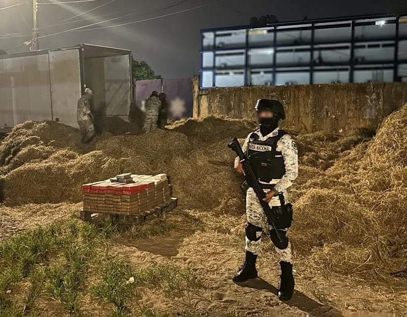 En cumplimiento de la Estrategia Nacional de Seguridad Pública y para contribuir con la Estrategia Nacional de Prevención de Adicciones Juntos por la Paz, en Veracruz, integrantes de la Guardia Nacional (GN) interceptaron un tractocamión que trasladaba un cargamento de aproximadamente 240 paquetes de aparente cocaína, oculta entre paja.