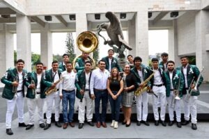 Por otra parte, al lado de las diputadas Naomi Edith Gómez Santos, presidenta de la Mesa Directiva de este Congreso, y Janix Liliana Castro Muñoz, el legislador Esteban Bautista Hernández saludó a los integrantes de la agrupación musical La Afromestiza Banda San Miguel, de Almolonga, municipio de Naolinco, que se presentó y engalanó esta jornada de actividades.