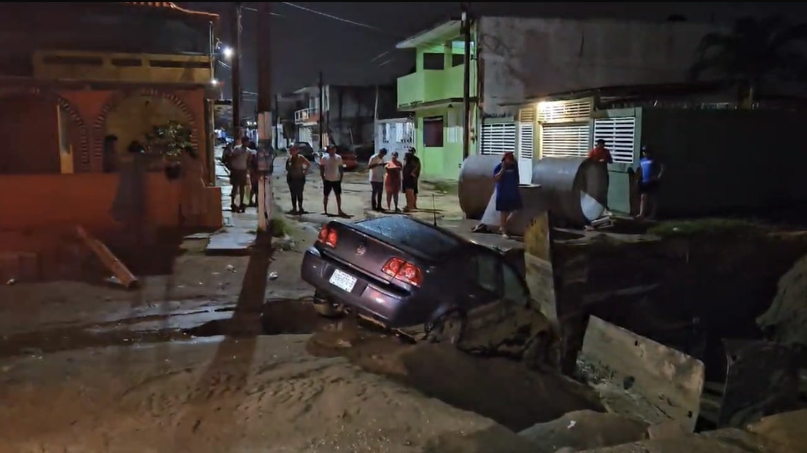 “Yo me dirigía a mi casa con la unidad que se fue al socavón, si había lluvias y no había señalización, nuestra calle es privada y solamente hay acceso por la parte de enfrente qué es la calle Golfo de México, entré normal y de repente mi carro se hundió vi como el agua empezó a subir, el vecino me ayudó a salir por la ventana”, dijo la mujer.