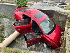 Automóvil cae a canal en la avenida Jirafas