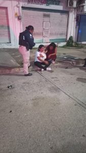 Arribando al lugar elementos de la Policía Municipal, quienes auxiliaron a la dama, quién quedó en Shock y se quejaba de fuerte dolores en el pecho.