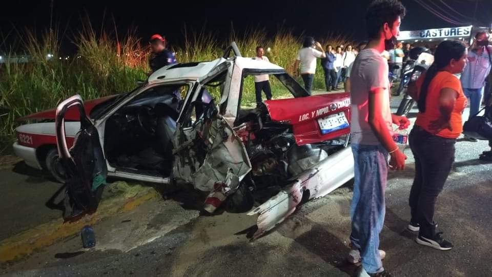 Coatzacoalcos, Ver., 24 de noviembre de 2022.- Un fuerte accidente automovilístico se registró la noche de este jueves sobre Avenida Universidad a la altura del Cereso de Coatzacoalcos, en el que resultaron lesionados tres estudiantes de la ETI 96 y un taxista
