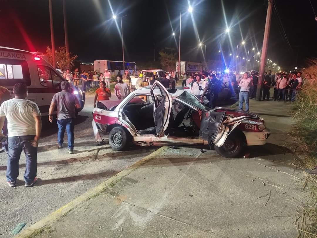 Fue tal la colisión que dos de los taxis quedaron completamente destrozados, uno de ellos volcado sobre su costado. En una de las unidades quedaron atrapados los jóvenes estudiantes, por lo que los cuerpos de auxilio hicieron uso de las quijadas de la vida para su rescate.