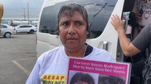 “Busco a mi mamá y a mí hija, la desaparición de ellas fue que se las llevaron los estatales el 2 de agosto de 2013, no sabemos por qué se las llevaron, la fiscalía no hace nada nosotras somos las que andamos trabajando, escarbando, jalando palas, picos, y de todo, buscándolas a donde Dios nos ayude”, sostuvo.