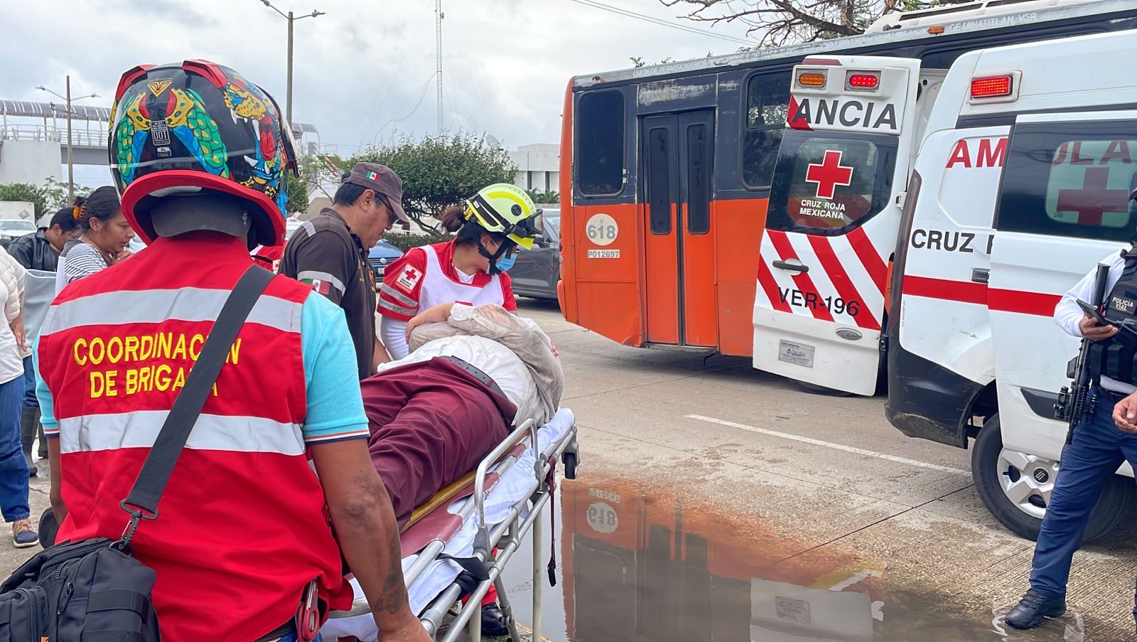 Un estudiante de la ETI 96 de Coatzacoalcos, resbaló al bajar de un urbano marcado con el número 180.