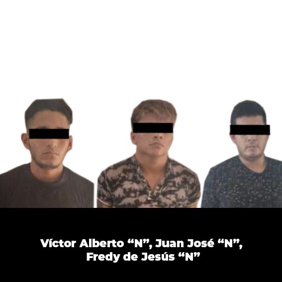 Tras ser detenidos les informaron el motivo de su aprehensión, y conforme a los protocolos de actuación policial, le hicieron una revisión preventiva a Víctor Alberto “N”, Juan José “N” y Fredy de Jesús “N” y les aseguraron un arma de fuego corta, cargador, cartuchos útiles, 38 dosis de una sustancia similar al cristal, 10 bolsitas con hierba verde con características a la marihuana, tablas de castigo, placas balísticas y un casco táctico.
