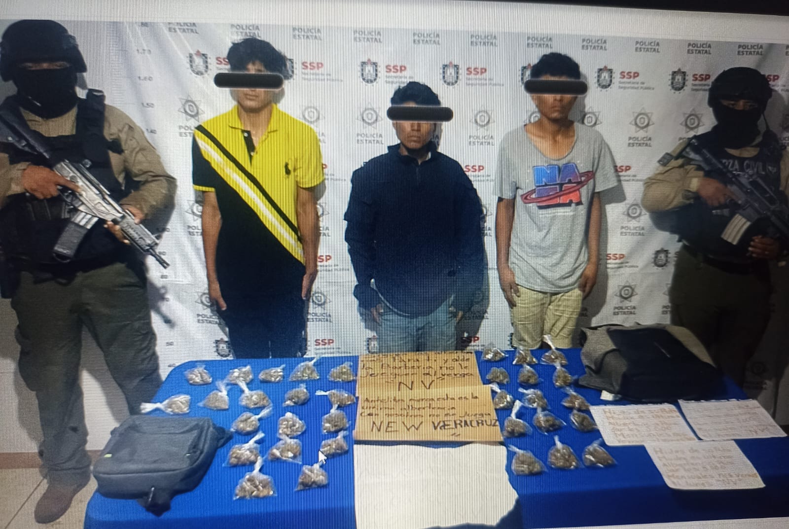 Se trató de Alexis N de 19 años, Jesús Daniel N de 19 y Luis Enrique N de 20, quienes portaban armas, cartulinas con amenazas, así como papeles que dejaban a los comercios para que pagaran la cuota.