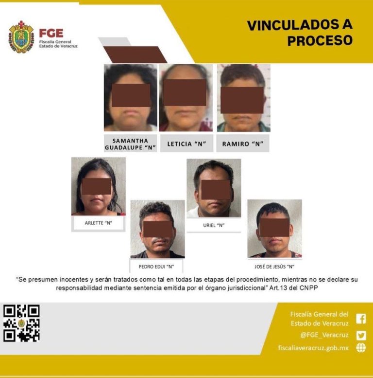 La Fiscalía General del Estado informa que, como resultado de trabajos de investigación realizados por la Fiscalía de Investigaciones Ministeriales y la Fiscalía Regional Coatzacoalcos, fueron vinculadas a proceso siete personas, presuntamente relacionadas con una célula delictiva que opera en la zona sur de la entidad.