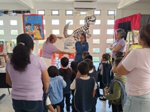 Durante la visita guiada a la biblioteca, los asistentes disfrutaron de una serie de actividades diseñadas para despertar su imaginación y curiosidad, entre ellas el teatro guiñol “Un regalo inesperado”, las lecturas de los cuentos “Si yo fuera bruja” y “El ratón más famoso”, además de una actividad manual y una dinámica de intercambio de libros que fomentó el hábito de compartir y descubrir nuevas historias.