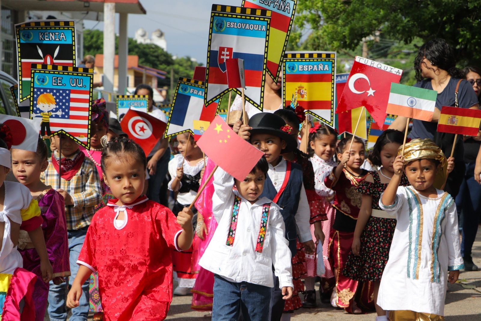 Durante el recorrido, los pequeños representaron a diversos países miembros de la ONU, luciendo trajes típicos, portando banderas y compartiendo con entusiasmo la riqueza cultural de cada nación. Padres de familia y personal docente se dieron cita para acompañar y aplaudir a los niños, quienes se convirtieron en verdaderos embajadores de la paz y la diversidad.