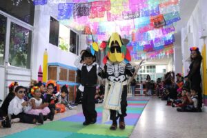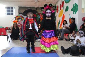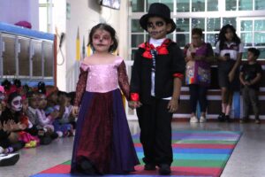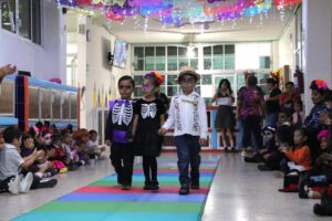 Como parte de las actividades, el CADI ‘Eva Sámano’ llevó a cabo una colorida pasarela de disfraces, donde los niños y niñas lucieron atuendos alusivos a la festividad, destacando la creatividad y entusiasmo.