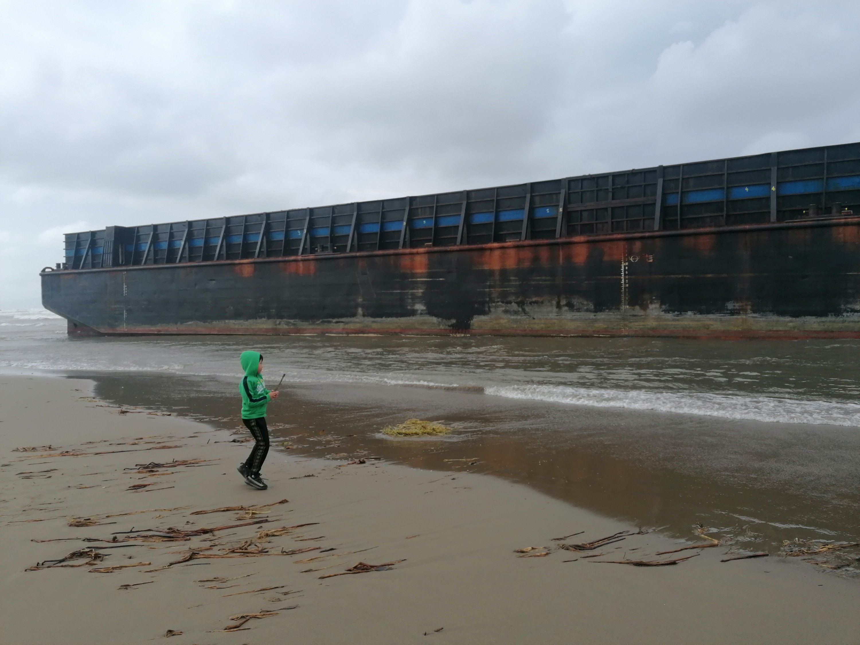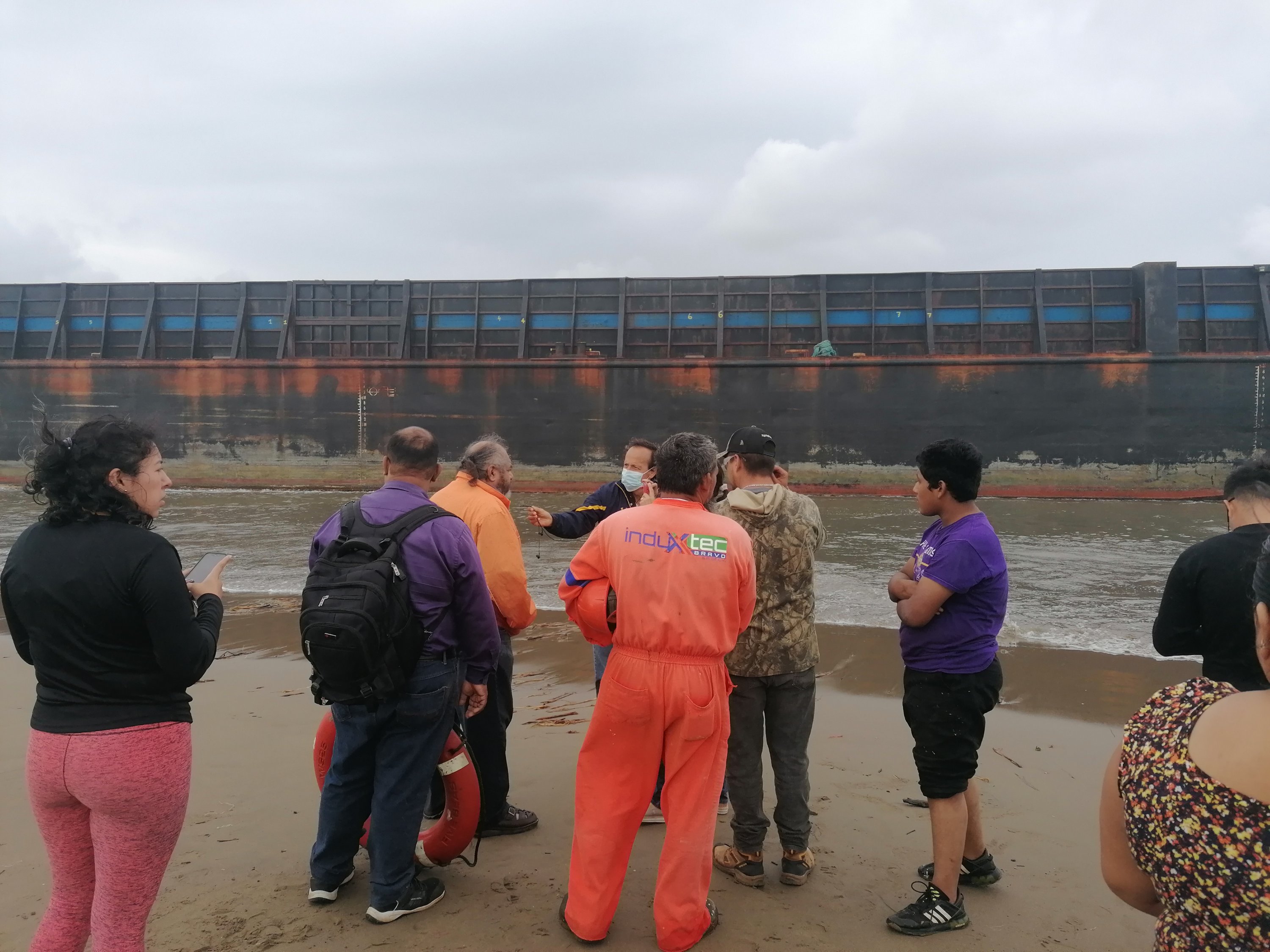 La barcaza LM3004 Panamá encalló alrededor de las 14:00 horas en las playas de Coatzacoalcos, derivado de las ráfagas de viento y el fuerte oleaje del Frente Frío número 9.