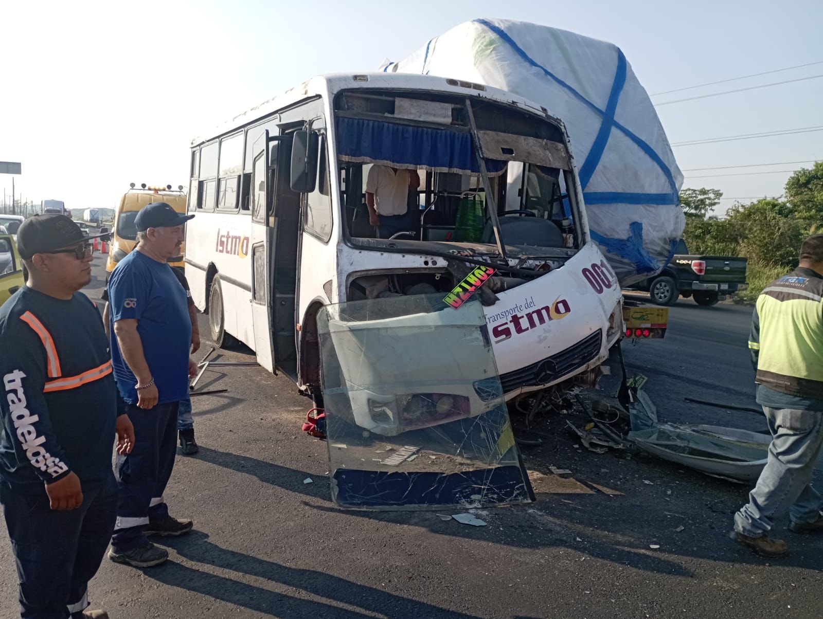 El incidente no dejó personas heridas, por lo que únicamente este camión de la línea “Transporte del Istmo” sufrió daños materiales, al quebrarse el parabrisas y dañarse gran parte de la defensa.