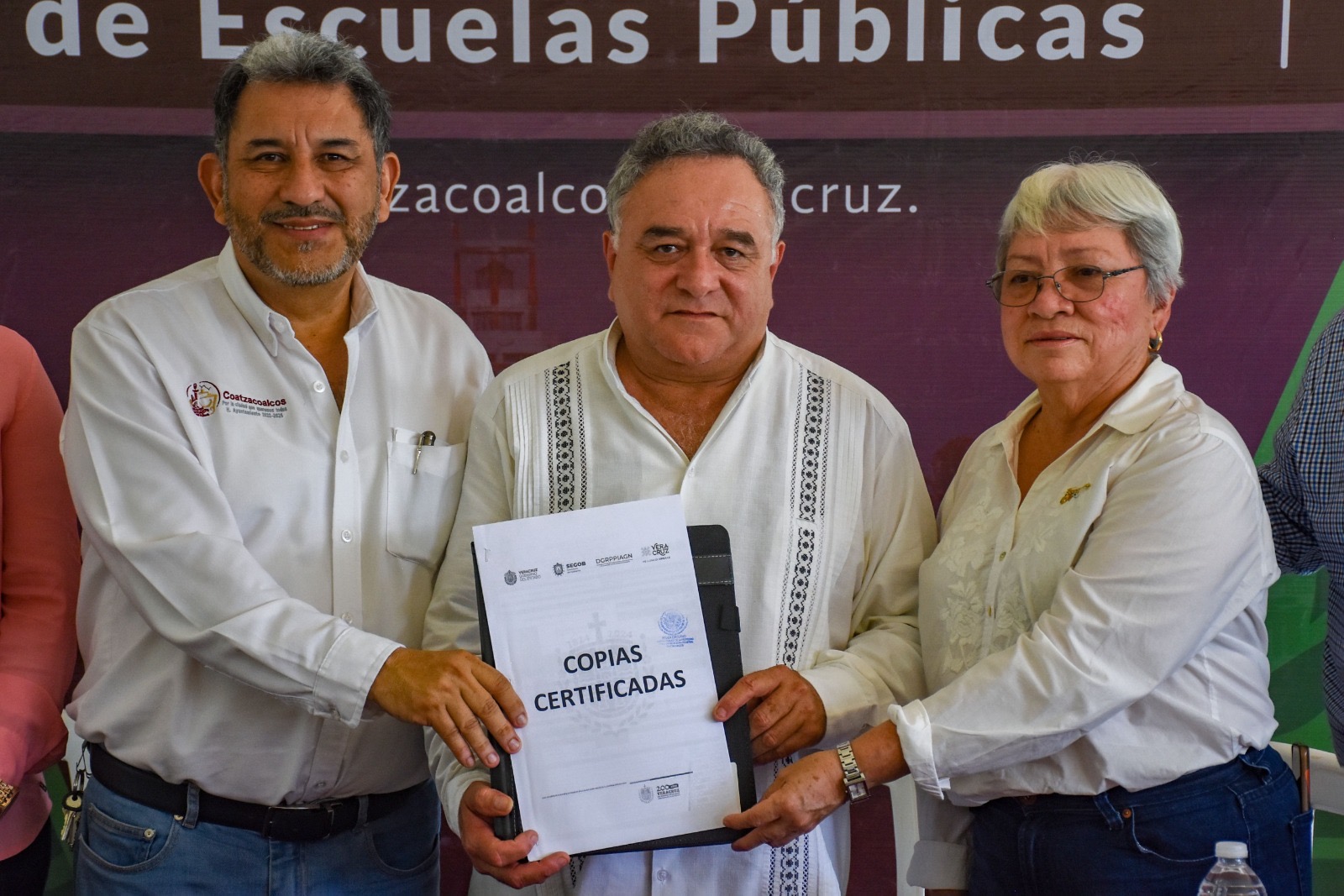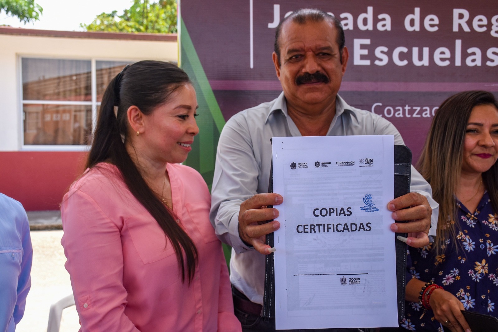 La visita a las cinco escuelas de este martes forma parte de las ‘Jornadas de Regularización de Escuelas Públicas’ que el Ayuntamiento de Coatzacoalcos inició este lunes en el jardín de niños ‘Fernando Montes de Oca’ y la primaria ‘Cristóbal Colón’, donde se entregaron los documentos que acreditan sus propiedades.