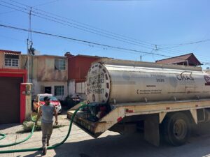 Como parte del operativo, personal del organismo operador coordina recorridos en distintos sectores para abastecer con pipas a los hogares que actualmente enfrentan baja presión o interrupciones en el servicio de agua potable.