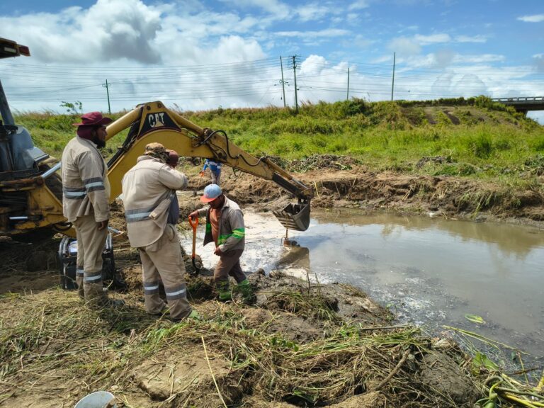 Personal operativo de la Comisión Municipal de Agua Potable y Saneamiento (CMAS) se encuentra realizando trabajos de reparación en una fuga de agua detectada en la línea de 18 pulgadas, ubicada cerca del puente Calzadas II, sobre la carretera antigua a Minatitlán.
