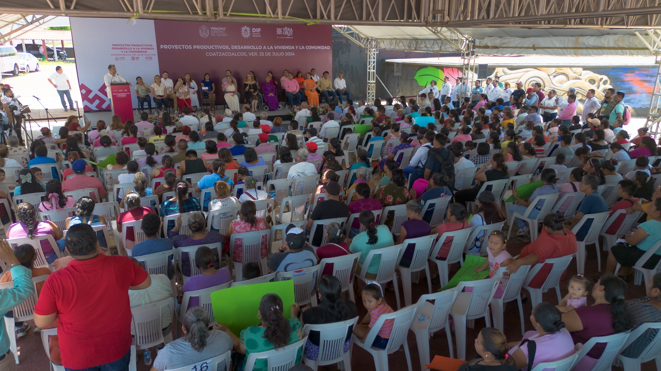 Durante la entrega de ‘Proyectos Productivos, Desarrollo a la Vivienda y a la Comunidad’ donde se benefició a más de mil 500 personas de 18 municipios de la región sur de la entidad en las instalaciones de la Expo Feria de Coatzacoalcos, Quintanar Barceló agradeció al presidente municipal Amado Cruz Malpica y a la presidenta del DIF Municipal, Esther Mortera Zetina, por el apoyo otorgado para este evento.