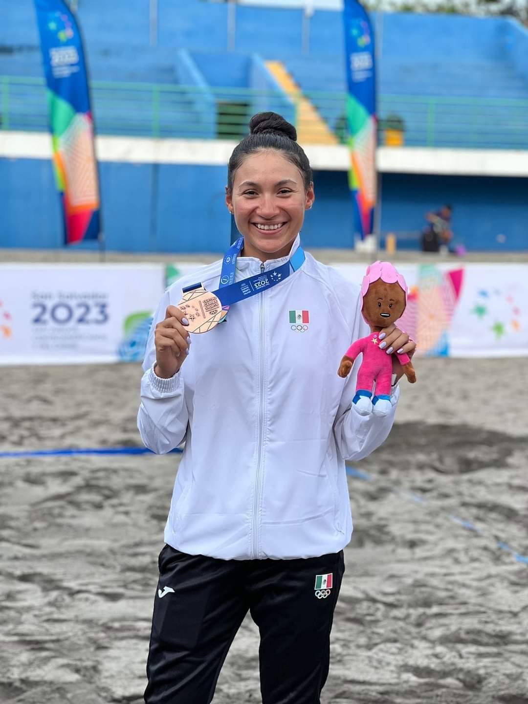 “Felicitamos con mucho entusiasmo a la voleibolista orgullo de nuestra ciudad, Atenas Gutiérrez, por haber obtenido la Medalla de Bronce en las competencias de Voleibol de Playa, disputadas en el marco de los XXIV Juegos Deportivos Centroamericanos y del Caribe San Salvador 2023, al lado de su compañera Abril Flores, de Sinaloa”.