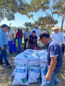 Como parte del programa de apoyo directo, se realizó la entrega de biofertilizantes en los ejidos de Guillermo Prieto y Colorado. A diferencia de los químicos tradicionales, estos insumos biológicos buscan optimizar el vigor de las plantas sin comprometer la integridad del ecosistema.