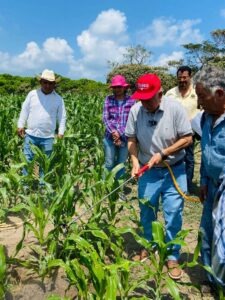 Rutilio de Dios Ramos, director de Desarrollo Agropecuario, junto con el Comité Estatal de Sanidad Vegetal, realizó un recorrido de supervisión en 31 hectáreas de cultivo de maíz.