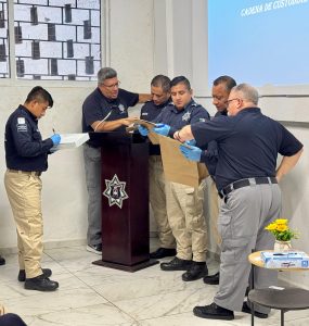 Con el objetivo de fortalecer los conocimientos teóricos y prácticos en los procedimientos de hechos delictivos, elementos de la Policía Municipal de Coatzacoalcos participaron en la plática “Procesamiento de la escena del crimen” en el que se abordaron temas como: fotografía forense, cadena de custodia, recolección y levantamiento de indicios.