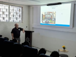 La conferencia fue impartida por el C.S.I. Mark A. Waldo, jefe del Departamento Forense de la Policía de Santa Ana, expresidente de la CSDIAI División California (Santa Ana, California, EUA), y el C.S.I. Ramón Cervantes Rivera, jefe del Departamento Forense de la Policía de Elk Grove, expresidente de la CSDIAI División California (Sacramento, California, EUA), y quienes actualmente representan a Forensics360, una compañía independiente de capacitación forense que ofrece formación práctica y en campo sobre el procesamiento de escenas del crimen.