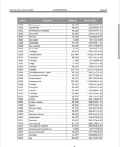 De acuerdo con lo publicado en la Gaceta Oficial del Estado el pasado 28 de enero, el Congreso local y la Secretaría de Finanzas y Planeación (Sefiplan) han establecido que la primera ministración, correspondiente al mes de enero, deberá ser entregada a los 212 ayuntamientos a más tardar el 9 de febrero.
