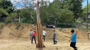 La estructura del palo volador se partió por la mitad, provocando la caída de los hombres, quienes resultaron gravemente lesionados.