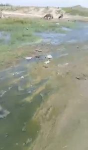 El río de aguas sucias abarca varias  cuadras de la calle Margaritas, hasta desembocar a la playa; y justo es el paso de los pequeños que asisten a la escuela primaria.