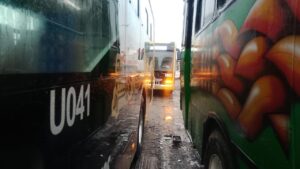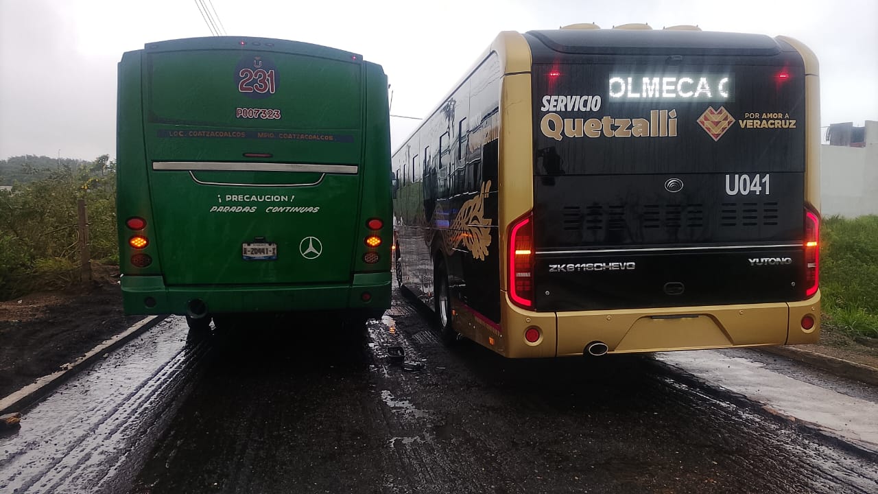 En pleno inicio de semana y bajo la lluvia, se registró un percance vial en la entrada de  Lomas de Barrillas, donde dos unidades de transporte público – una del Quetzalcóatl y Quetzalli- se vieron involucradas en un choque por alcance que, afortunadamente, no dejó personas lesionadas.