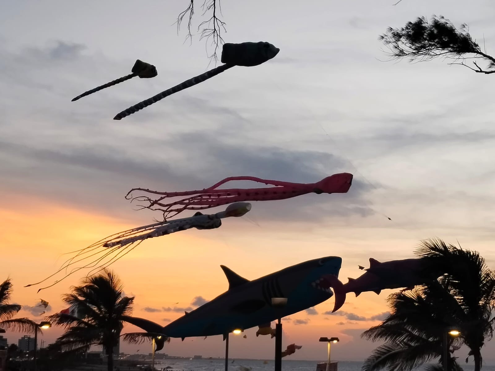 Los protagonistas indiscutibles son los gigantescos papalotes de figuras marinas, algunos de más de 30 metros de largo. Estas impresionantes creaciones adornan el malecón costero, captando la atención y la emoción de los más pequeños.