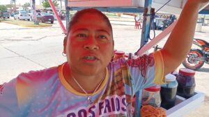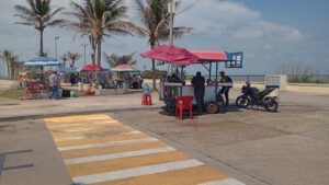 “Vengan a tomar un poco de sombrita con un coco, un raspado, una gloria, una chamoyada, un esquite o un elote; es lo que pueden encontrar en todas las estaciones de las escolleras”, detalló Concepción Escobar.