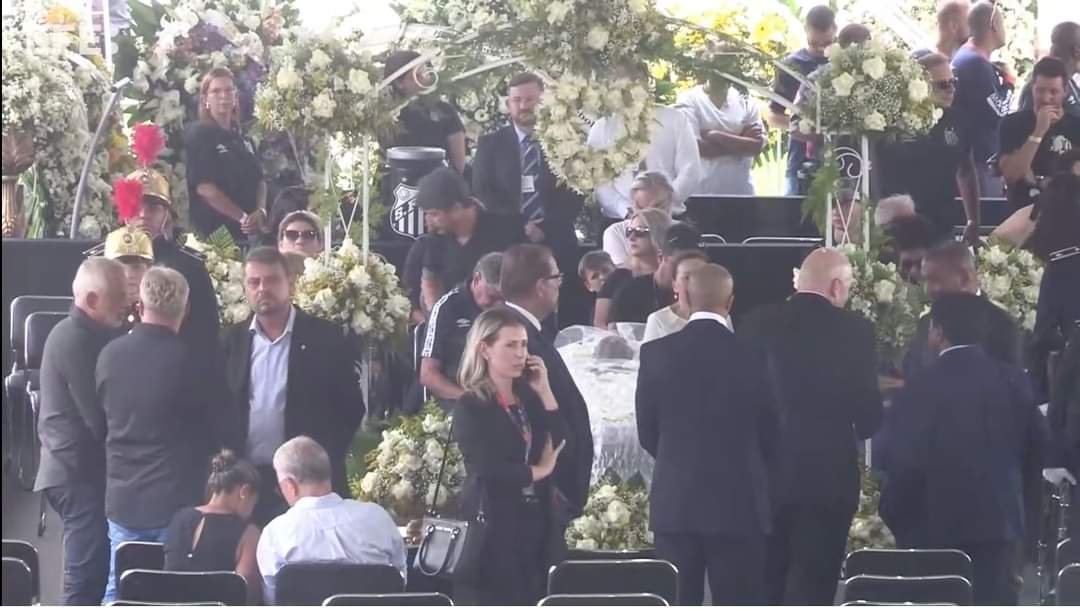 Antes de ese horario, Edinho, hijo de Pelé, y el exjugador Zé Roberto cargaron el ataúd, ayudados por personal del Santos, hasta una carpa situada en el centro de la cancha, un espacio que está reservado para los familiares.