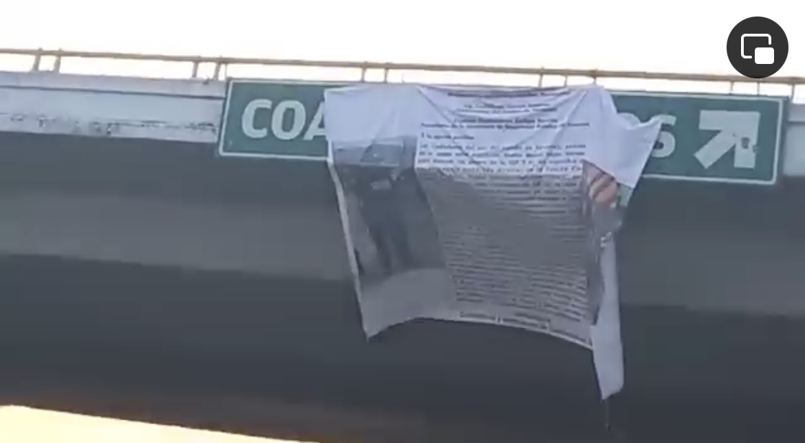 Alrededor de las 6:00 am ciudadanos denunciaron que una manta con una larga leyenda se encontraba colgada en el puente que se encuentra en un punto muy transitado, rumbo a Coatzacoalcos y a la zona sur del país.