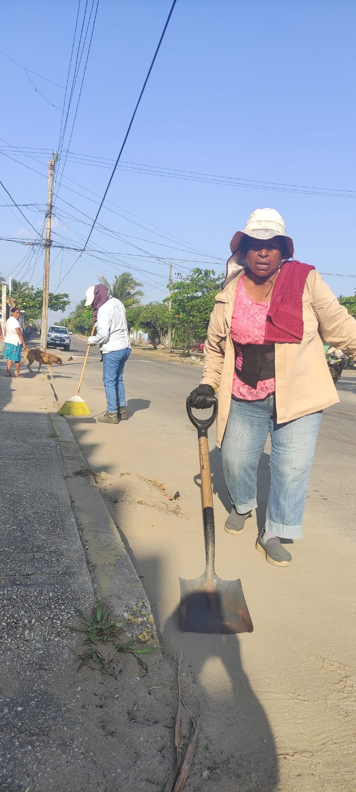 Coatzacoalcos, Ver. 8 de marzo de 2023. Como todos los días, la cuadrilla de limpieza integrada por ocho mujeres de villa Allende, inició sus labores con palas, escobas y rastrillos este miércoles 8 de marzo, sin descanso para celebran el Día Internacional de la Mujer.