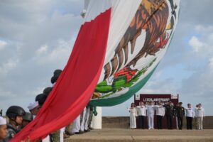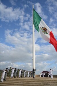 Durante el acto de izamiento se rindieron honores de ordenanza al lábaro patrio y se entonó el Himno Nacional Mexicano, con la participación de la escolta y banda de guerra de la Séptima Zona Naval, así como de la Orquesta de Música Popular del Ayuntamiento.
